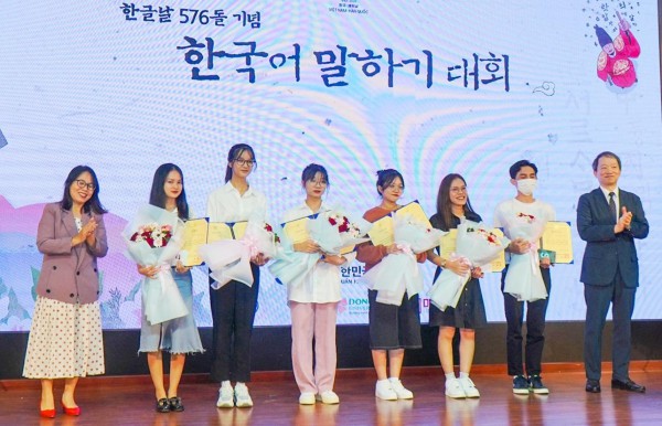 Ngày 27.10, nhân kỷ niệm 30 năm quan hệ ngoại giao Hàn Quốc – Việt Nam và 576 năm ngày sáng tạo chữ Hàn (ngày Hangeul), Tổng Lãnh sự quán Hàn Quốc tại Đà Nẵng đã trao giải thưởng cuộc thi hùng biện tiếng Hàn cho các sinh viên đến từ tỉnh Thừa Thiên – Huế, Quảng Nam và Đà Nẵng.