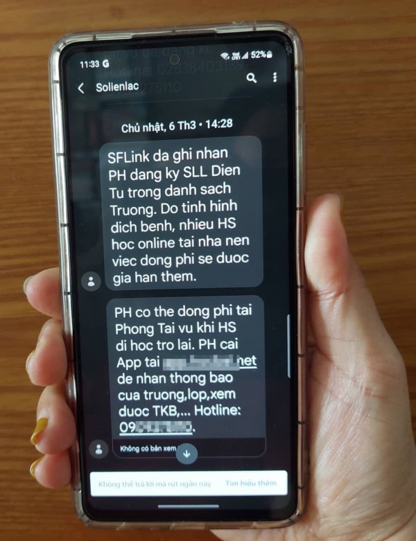 Con tôi năm nay học lớp 10, nhà trường có thu tiền sổ liên lạc điện tử 90.000 đồng nhưng từ đầu năm học đến giờ chưa nhận được bất cứ tin nhắn nào qua kênh đó.