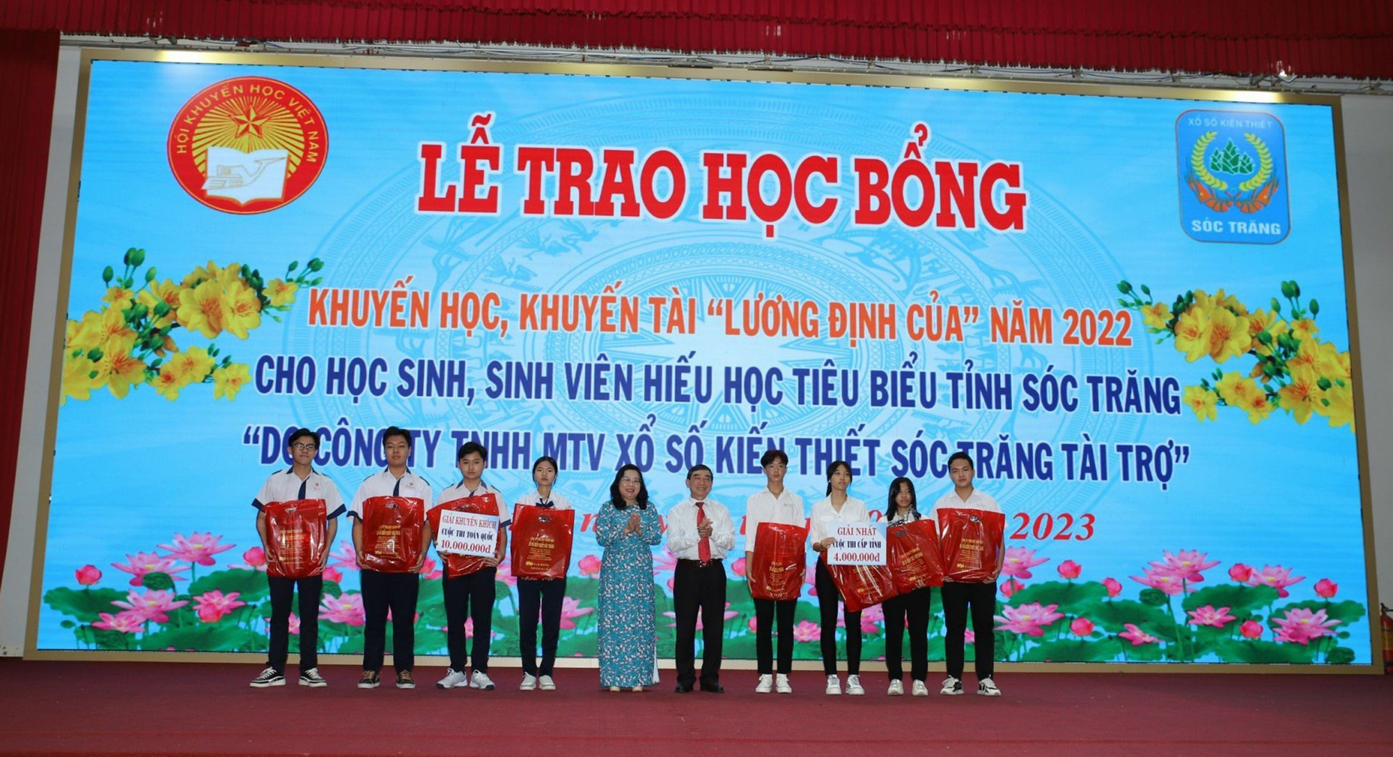 Đồng hành cùng học bổng Lương Định Của gần 20 năm qua, Công ty TNHH MTV Xổ số kiến thiết Sóc Trăng đã hỗ trợ trên 30 tỉ đồng và rất nhiều quà tặng để giúp đỡ kịp thời cho học sinh, sinh viên quê quán Sóc Trăng vượt khó, học tốt.