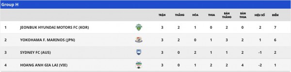 Nếu như HAGL đang nỗ lực có kết quả tốt ở 3 trận lượt về để nuôi hi vọng đi tiếp thì Jeonbuk Hyundai Motors đã sáng cửa lọt vào vòng 16 đội. Đội bóng của HLV Kim Sang-sik dù cũng chỉ ghi được 2 bàn thắng như HAGL nhưng lại đang đứng đầu bảng H. Dù ít khi đốt lưới đối phương nhưng những bàn thắng của đại diện đến từ Hàn Quốc đều mang ý nghĩa rất quan trọng. Chỉ với 2 pha lập công nhưng Jeonbuk đã giành đến 7 điểm sau 3 trận lượt đi. Họ hòa 0-0 với Sydney FC trước khi lần lượt thắng Yokohama và HAGL với cùng tỷ số 1-0.