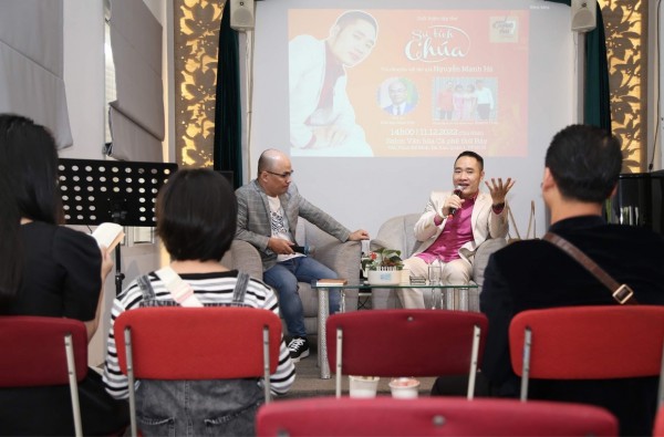 Tác giả Nguyễn Mạnh Hà trình bày tại chỗ ca khúc Sự tích Chúa do chính anh phổ nhạc cho bài thơ chủ đề của tập sách. Và một ca khúc khác nữa anh sáng tác dựa trên tứ thơ của Thiền sư Thích Nhất Hạnh |