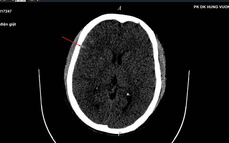 Trước đó, trong quá trình sửa điện tại nhà, bệnh nhân không may bị điện giật, ngã ngửa đập đầu xuống đất, bất tỉnh khoảng 5 phút, gia đình nhanh chóng đưa bệnh nhân tới phòng khám.