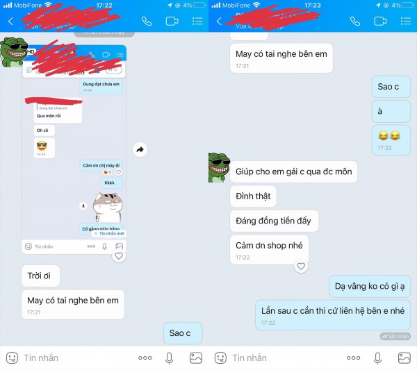 “Bạn xài xong mình sẽ hỗ trợ mua lại với giá 40%. Nếu không đủ tài chính, bạn có thể cân nhắc combo tai nghe và camera iPhone 5s giá 4,7 triệu, hoặc chỉ mua mỗi bộ tai nghe với giá 1,5 triệu đồng”, người này tiếp tục chào hàng, cho biết sẽ lập tức chuyển phát hỏa tốc nếu chúng tôi “chốt đơn”.