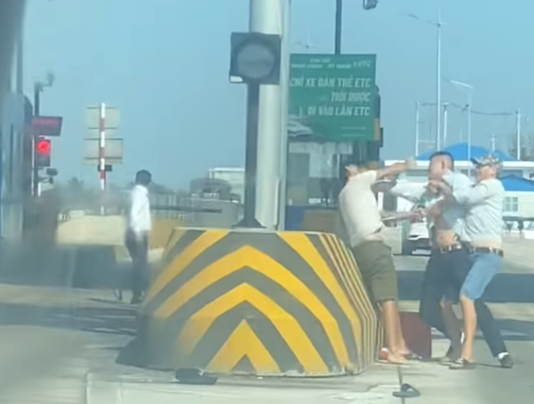 Sau đó, khi đến trạm thu phí trên cao tốc Trung Lương – Mỹ Thuận (xã Tam Hiệp, H.Châu Thành, Tiền Giang), có 3 người được cho là trên xe tải và xe 7 chỗ, xuống xe dùng ống tuýp sắt lao vào ẩu đả. Xe tải đậu giữa đường, xe 7 chỗ đậu trước trạm thu phí ở làn sát dải phân cách. Phát hiện sự việc, nhân viên và bảo vệ trạm thu phí đã ra can ngăn 3 người này.