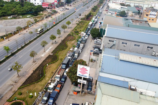 Hàng dài xe ô tô xếp hàng tại TTĐK xe cơ giới 29-08D