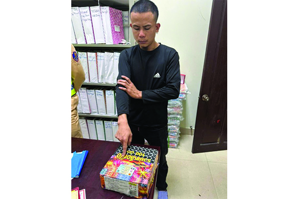Lái xe là Nguyễn Hữu Hùng (SN 1993, ngụ thôn Giang Tiên, xã Bích Hào, tỉnh Nghệ An). Qua kiểm tra nồng độ cồn và test nhanh cho kết quả Nguyễn Hữu Hùng dương tính với chất ma túy. Tổ công tác của Phòng CSGT phối hợp với Công an xã Lộc An kiểm tra phương tiện và lái xe, phát hiện trên xe có 1 hộp pháo hoa loại 100 ống (nặng khoảng 1,6kg) và 1 con dao mẹo.