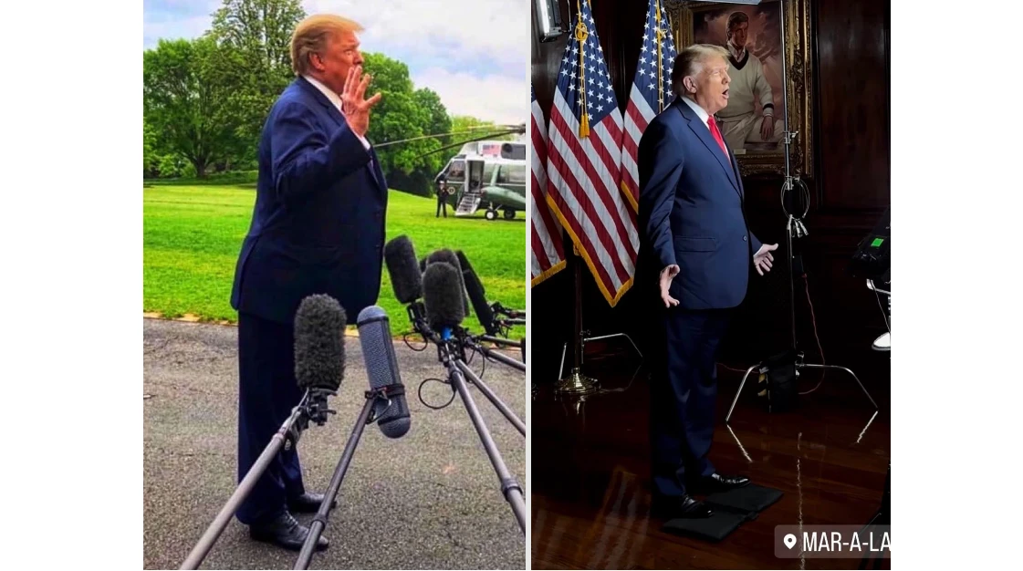 Ảnh chụp tư thế cựu Tổng thống Trump không có và có tấm chèn chân