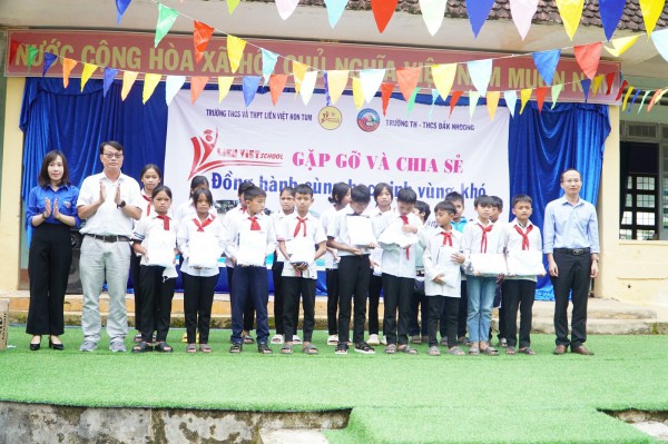 Sau thời gian kêu gọi quyên góp, Trường THCS-THPT Liên Việt Kon Tum đã vận động được khoảng 100 triệu đồng. Nhà trường tổ chức mua sắm 450 bộ quần áo đồng phục mới cùng 1 bộ trống đội, 80 áo khoác và 200 quyển truyện tranh để tặng học sinh Trường tiểu học-THCS Đăk Nhoong.