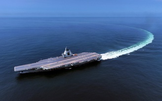 Tàu sân bay Phúc Kiến của Trung Quốc trong đợt chạy thử nghiệm vào tháng 7.2024 Ảnh: AP