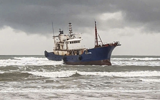 Tàu vỏ thép có trọng tải khoảng 300 tấn trôi dạt vào bờ biển Quảng Ngãi