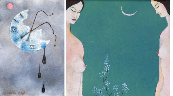 2 tác phẩm của họa sĩ Bửu Chỉ: Ký ức, Thiếu nữ và trăng (phải) |