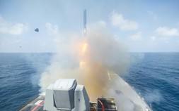 Tàu chiến Mỹ phóng tên lửa tấn công Iran ngày 28.2 Ảnh: US Navy