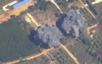 Vụ nổ tại tỉnh Banteay Meanchey (Campuchia) sau cuộc không kích của Thái Lan Ảnh: Reuters
