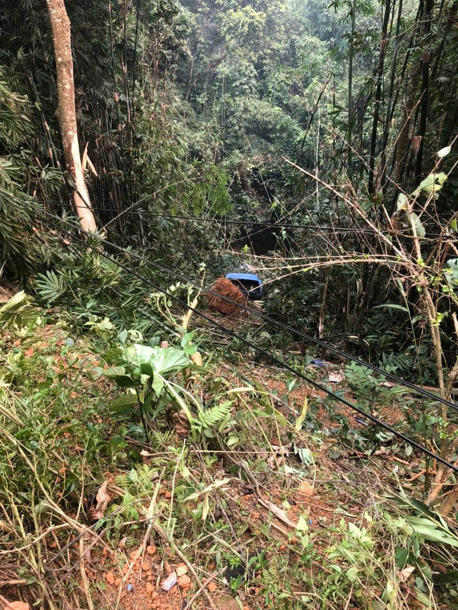 Cú đâm mạnh khiến cả 2 chiếc xe bị rơi xuống vực sâu (phía taluy âm) khoảng 25 m so với mặt đường.