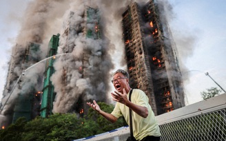 Người đàn ông hô hoán khi vợ mình mắc kẹt trong vụ cháy cụm chung cư Hoằng Phúc Uyển ở Hồng Kông ngày 26.11, khiến ít nhất 161 người thiệt mạng. Ngọn lửa bùng phát, lan 7 trong số 8 tòa chung cư. Hàng trăm người bị thương và gần 5.000 người mất nhà sau thảm kịch