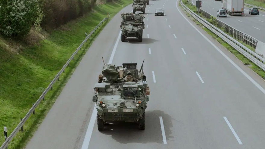 Đoàn xe quân sự di chuyển từ Ba Lan tới Đức trong cuộc tập trận của NATO. Ảnh: NY Times