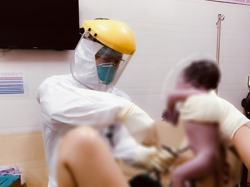 Đơn nguyên Sản COVID-19, Bệnh viện Đa khoa Đức Giang (Hà Nội) vừa đỡ đẻ thành công cho sản phụ 42 tuổi, sinh con lần 3, bị nhiễm COVID-19.