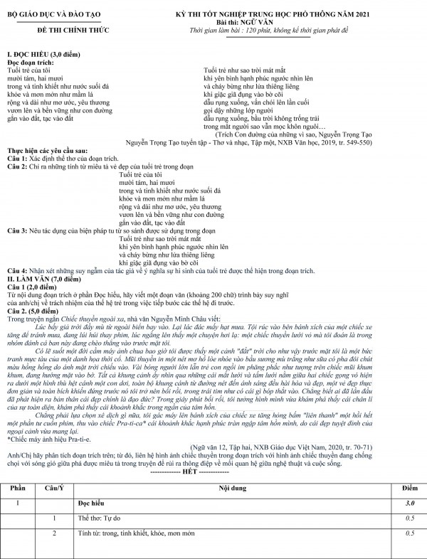 * Gợi ý giải đề thi môn ngữ văn kỳ thi tốt nghiệp THPT 2022.