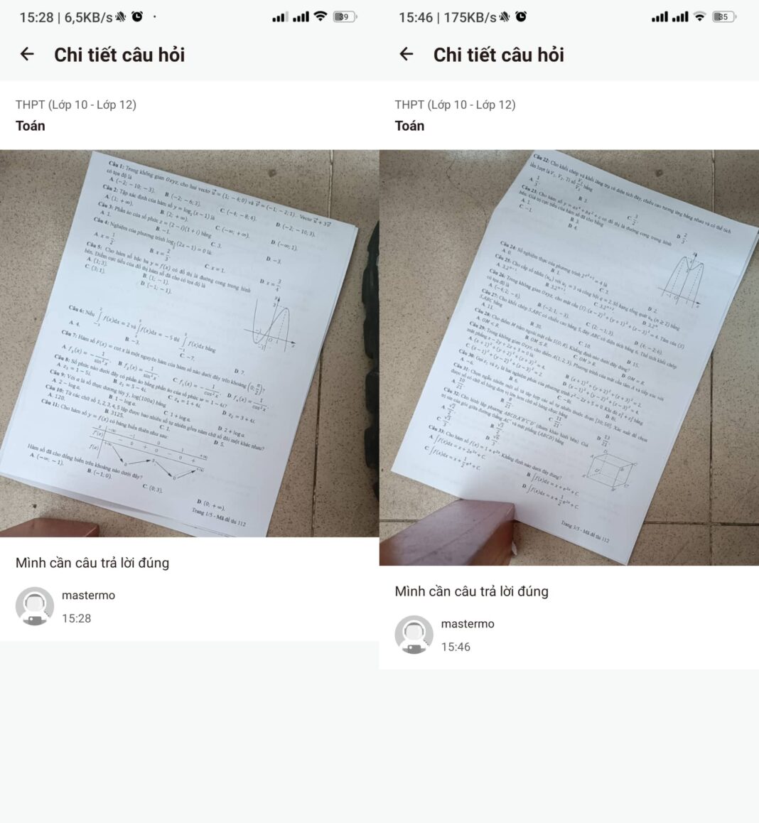 | Tài khoản mastermo đã hai lần gửi đề lên mạng vào lúc 15 giờ 28 và 15 giờ 46, tất cả đều trước giờ kết thúc làm bài thi môn toán là 16 giờ |