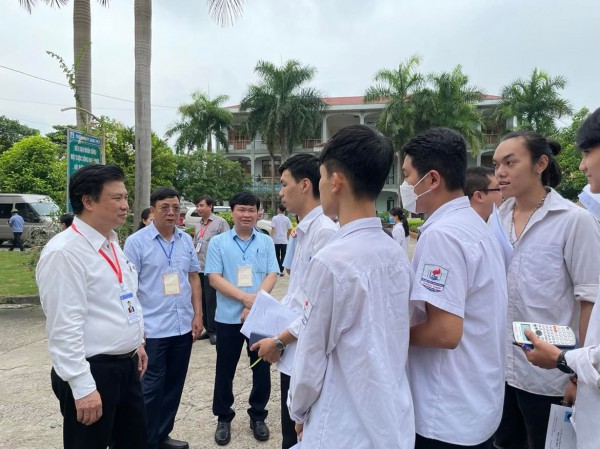 Chiều nay 7.7, Thứ trưởng Bộ GD-ĐT Nguyễn Hữu Độ dẫn đầu đoàn kiểm tra số 1, kiểm tra công tác coi thi tại Hội đồng thi tỉnh Thái Nguyên. Kết thúc buổi thi môn toán, ông Độ đã trò chuyện với thí sinh tại điểm thi THPT Gang Thép về đề thi môn này và nhận được phản hồi tích cực, tự tin về bài làm của các em.