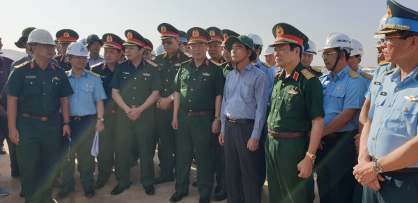 Sáng nay 14.3, thượng tướng Nguyễn Tân Cương, Ủy viên T.Ư Đảng, Tổng Tham mưu trưởng QĐND Việt Nam, Thứ trưởng Bộ Quốc phòng, đã dẫn đầu đoàn công tác kiểm tra tiến độ xây dựng sân bay Phan Thiết (Bình Thuận).