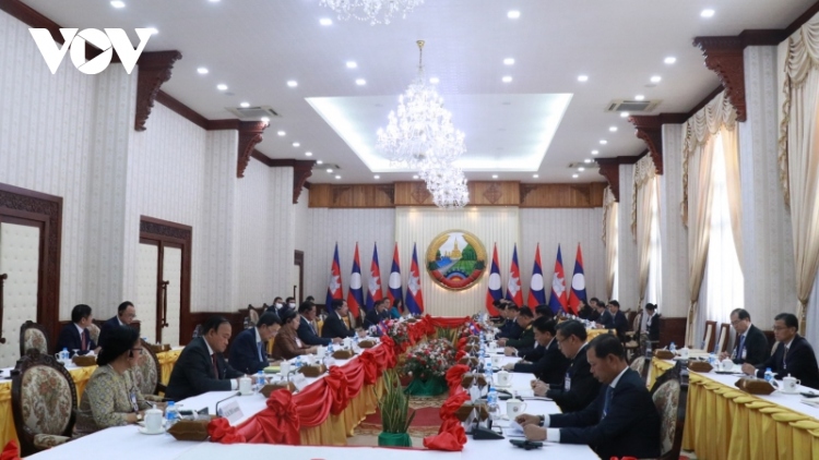 Thủ tướng Campuchia Samdech Techo HunSen (trái) và Thủ tướng Lào Sonexay Siphandone.Tại Hội đàm, hai bên đã cùng nhau trao đổi, đánh giá cao về kết quả quan hệ hợp tác song phương, đa phương trong thời gian qua, nhất là từ khi hai nước nâng cấp mối quan hệ thành đối tác chiến lược toàn điện và bền vững lâu dài vào năm 2019.