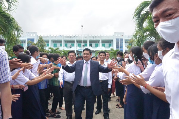 Trong chương trình công tác tại tỉnh Sóc Trăng, Thủ tướng Chính phủ Phạm Minh Chính đã  đến thăm, động viên giáo viên và học sinh Trường phổ thông dân tộc nội trú Huỳnh Cương.