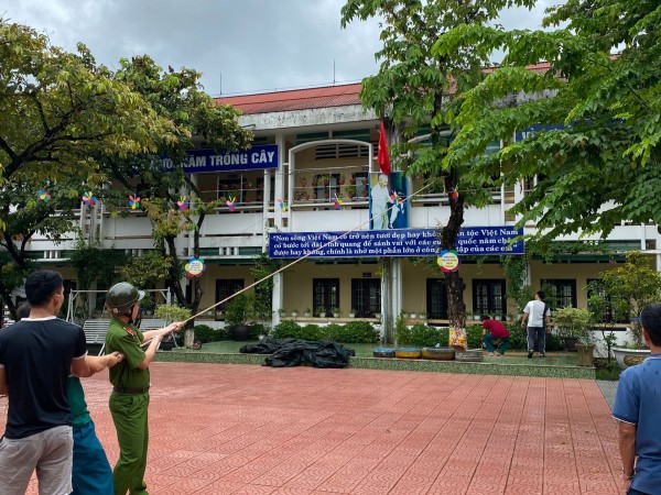 Trong sáng 26.9 lực lượng công an đã hỗ trợ các trường cắt tỉa cây, đảm bảo an toàn trước bão Noru |