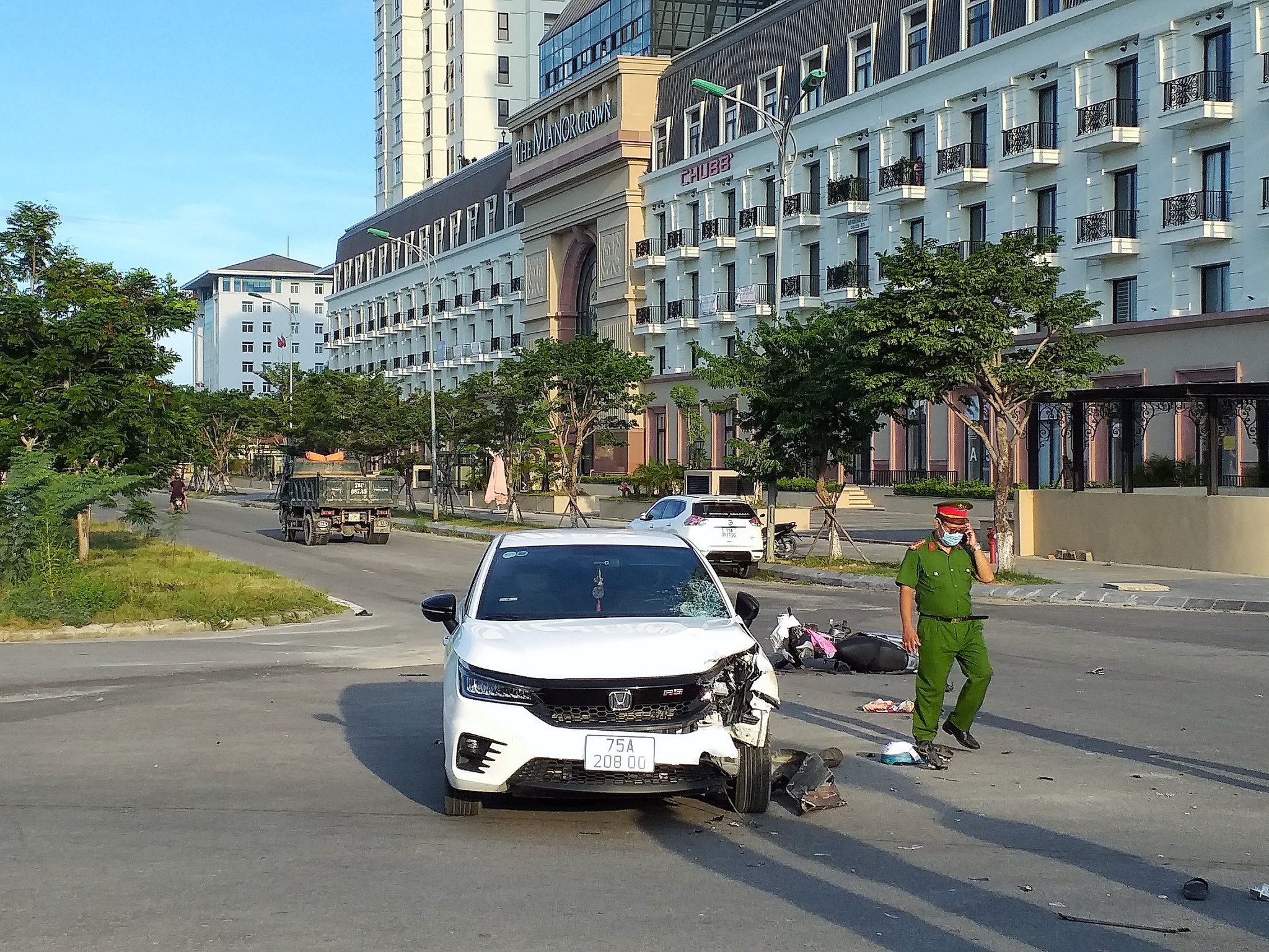 Theo thông tin ban đầu từ cơ quan công an, vào thời điểm trên, ô tô con BS 75A-208.00 do T.T.K (nữ, 28 tuổi, trú tại khu C, chung cư Vicoland, P.Xuân Phú) điều khiển trên đường Tố Hữu hướng từ khu chưng cư The Manor Crown Huế lên trung tâm TP.Huế.