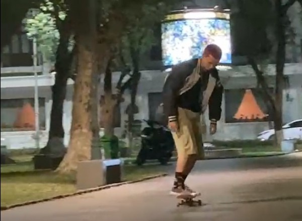Thanh niên trượt ván trên đường đi bộ Nguyễn Đình Chiểu, TP.Huế
