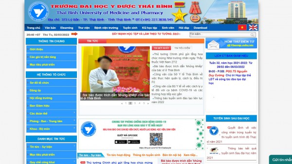 Bài viết có tiêu đề “Bài báo được trích dẫn “khủng khiếp” của bác sĩ ở Thái Bình” được giới thiệu trên trang chủ Trường ĐH Y dược Thái Bình