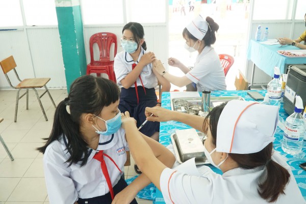 Ngày 16.4, ngày đầu tiên TP.HCM tiêm vắc xin Covid-19 cho học sinh lớp 6 và dự kiến tiêm cho hơn 28.000 em. Tuy nhiên, do tiêm 1 buổi nên có khoảng 10.000 em đã được tiêm.