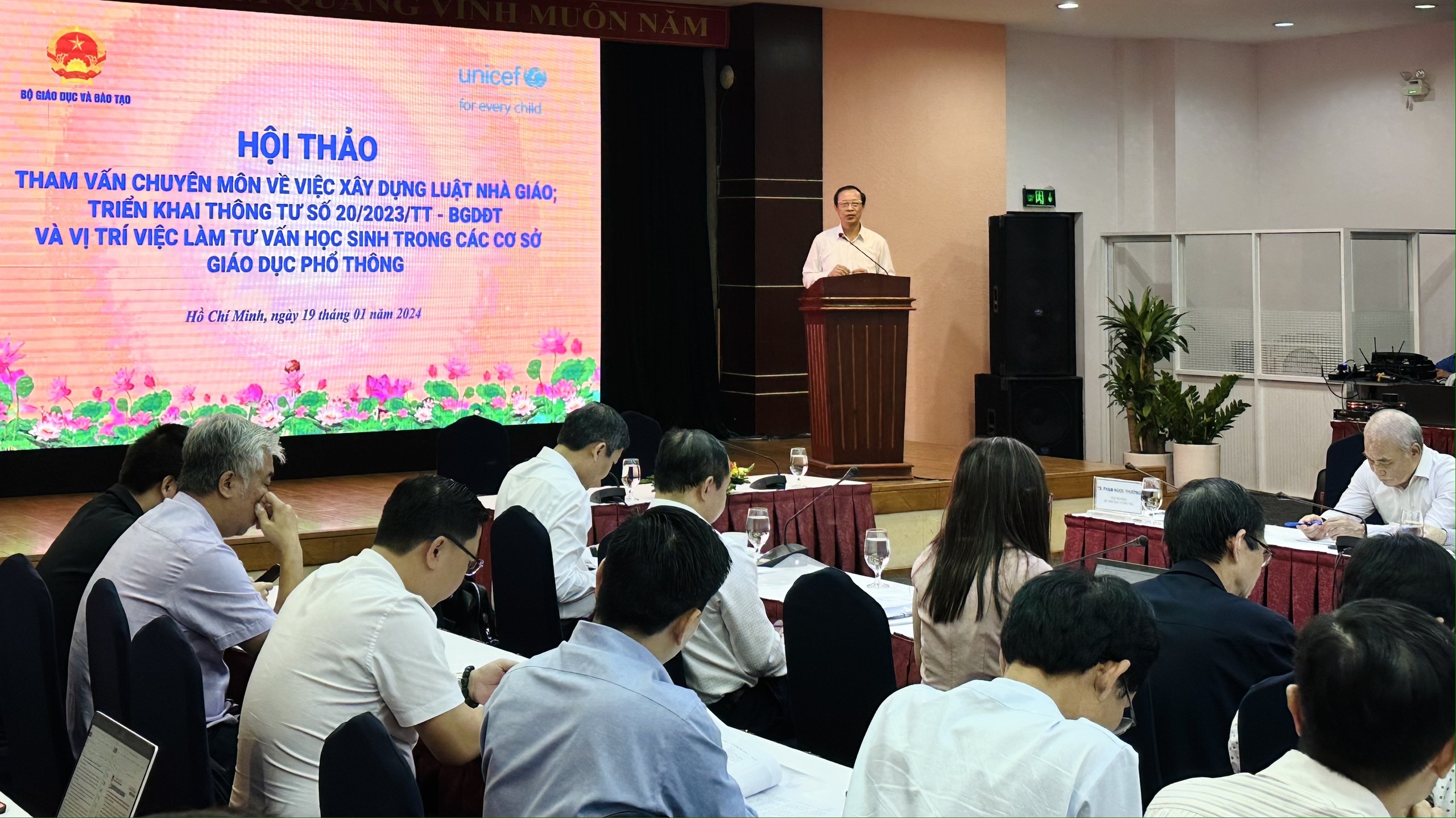 Phát biểu trong hội thảo tại TP.HCM ngày 19.1, tiến sĩ Vũ Minh Đức, Cục trưởng Cục Nhà giáo và cán bộ quản lý giáo dục (Bộ GD-ĐT), nêu sự cần thiết ban hành luật Nhà giáo và định hướng, quan điểm xây dựng luật cùng các chính sách cơ bản đề xuất trong luật Nhà giáo.