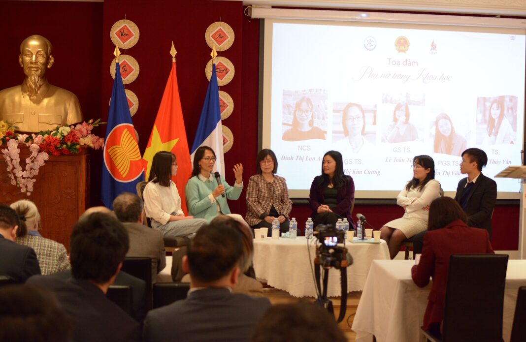 Buổi tọa đàm “Phụ nữ trong khoa học”, được tổ chức bởi UEVF – Hội Sinh viên Việt Nam tại Pháp dưới sự bảo trợ của Đại sứ quán Việt Nam tại Pháp, phối hợp cùng Phái đoàn thường trực Việt Nam bên cạnh UNESCO và Văn phòng Khoa học công nghệ Việt Nam tại Pháp, vừa diễn ra ngày 12.3.