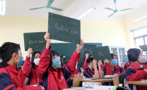 Học sinh lớp 6 Trường THCS Nham Biền số 1 (H.Yên Dũng, Bắc Giang) trong một giờ học môn khoa học tự nhiên