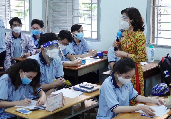 Một giờ học của cô trò Trường THPT Chuyên Lê Hồng Phong (TP.HCM) trong ngày trở lại trường sau đợt dịch Covid-19 lần thứ 4 |