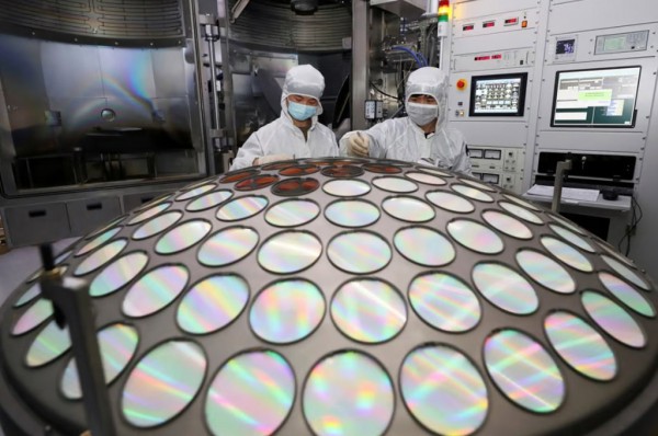 Nhân viên làm việc trên dây chuyền sản xuất chip bán dẫn |
