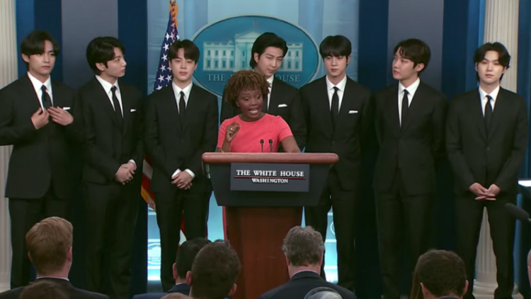 Mặc dù phóng viên không được tham dự cuộc gặp nhưng trước đó, các thành viên ban nhạc BTS đã có cuộc họp báo ngắn với Thư ký báo chí Nhà Trắng Karine Jean-Pierre. Phát biểu mở đầu cuộc họp báo, Trưởng nhóm BTS Kim Nam-joon với nghệ danh RM đã gửi lời cám ơn đến Tổng thống Biden và Nhà Trắng đã tạo cơ hội quan trọng cho BTS để nói về các nguyên nhân quan trọng và nhắc nhở ban nhạc với tư cách nghệ sỹ thì họ có thể làm được những gì.