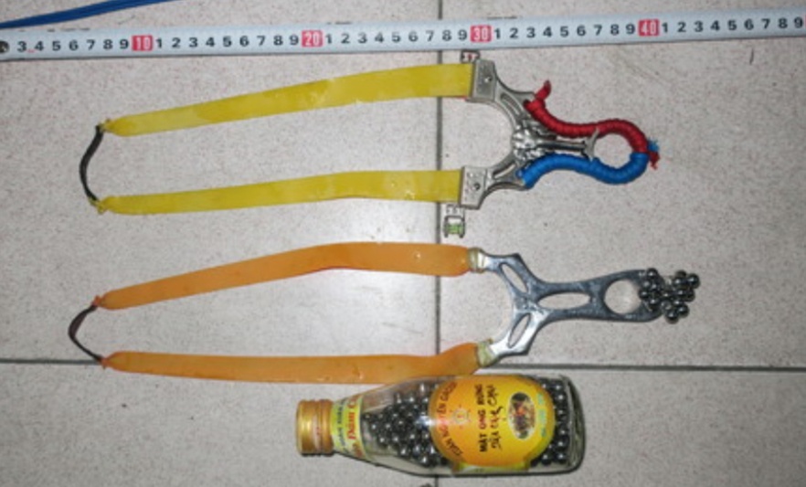 Cương dùng 2 cây ná và đạn chì làm vũ khí chống trả lực lượng chức năng |