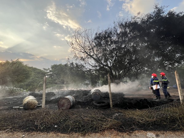 Đám cháy thiêu trụi hàng trăm lốp xe. Chủ bãi tập kết cũng có mặt trình diện lực lượng chức năng. Theo đó, trưa nay họ vừa đi thu gom lốp xe cũ, mang về tập kết tại đây, đến chiều nay định cho xe chở đi thì xảy ra cháy lớn.