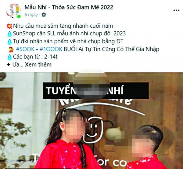 Một trang mạng đăng quảng cáo tuyển mẫu nhí |