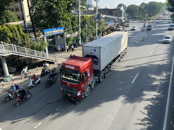 Trên đường đi làm, xe máy va chạm với xe container đang chuyển làn làm một nam bảo vệ tử vong thương tâm trên quốc lộ 1, đoạn qua địa bàn TP.Thủ Đức, TP.HCM.