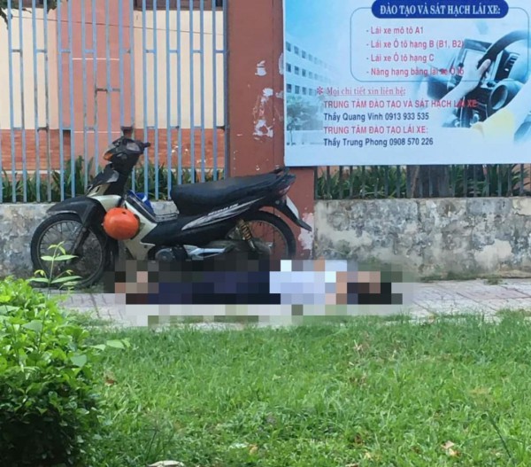 Tại hiện trường, chiếc xe máy đậu sát ông T., thi thể ông T. nằm ngửa, không mang giày, dép. Trên xe có treo bình nước uống và nón bảo hiểm.