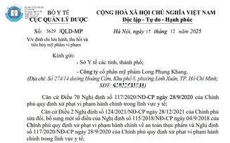 Công văn của Cục Quản lý dược (Bộ Y tế) chỉ đạo xử lý vi phạm trong sản xuất mỹ phẩm của Công ty cổ phần mỹ phẩm Long Phụng Khang
