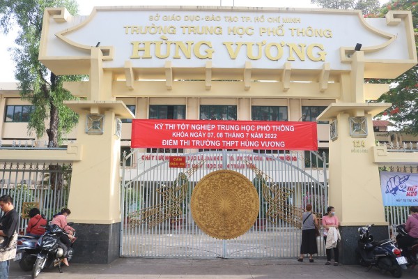 Tại điểm thi Trường THPT Hùng Vương, khá đông phụ huynh chờ con trước cổng