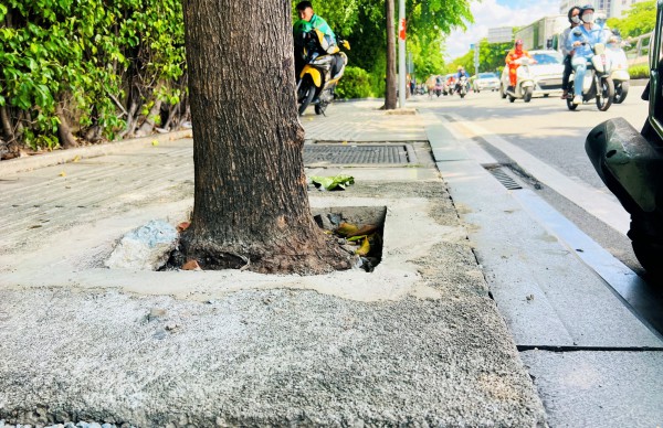 Cây xanh trên đường Trường Sơn, Q.Tân Bình, TP.HCM sau khi được đục bê tông thấm nước