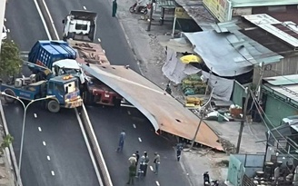 Theo thông tin ban đầu, khoảng 1 giờ cùng ngày, anh N.V.N (35 tuổi, ngụ TP.HCM) điều khiển xe đầu kéo chở tấm thép lớn lưu thông trên đường Nguyễn Hữu Thọ, hướng từ Nhà Bè về trung tâm TP.HCM.