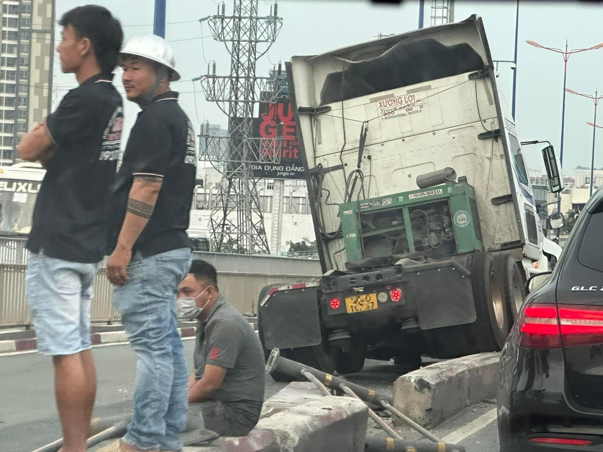 TP.HCM: Xe đầu kéo tông dải phân cách trên cầu Sài Gòn khiến người đi đường hốt hoảng