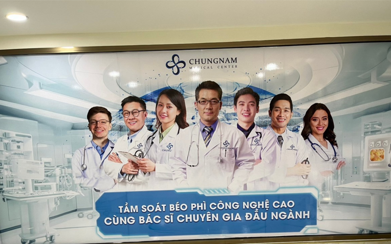 Kiểm tra thực tế, ghi nhận tại các tầng của cơ sở đều có treo các poster “CHUNGNAM MEDICAL CENTER” và đăng tải hình ảnh bác sĩ, trang thiết bị y tế và nội dung “Hủy mở tầng sâu”, “Tầm soát béo phì công nghệ cao cùng bác sĩ chuyên gia đầu ngành”. Tại các tầng, có các phòng chăm sóc da và trang bị các máy FSG 17 Laser OPT, Slim Pro Max Q88, có 2 khách hàng đến thực hiện chăm sóc da ngay tại thời điểm kiểm tra.