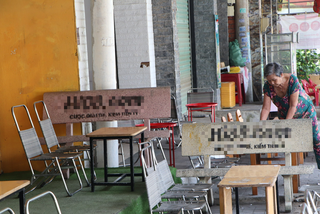 Nhiều ghế đá của người dân tại P.Long Thạnh Mỹ bị người lạ xịt sơn quảng cáo trang web cờ bạc